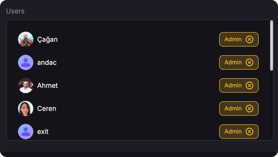 There are two different user options in the system: Administrators and Users. While users can only see certain panels, administrators determine which games users will play, language and time zone options, and which channels they can access. You can promote other users to admin status to help manage the Gamespace.