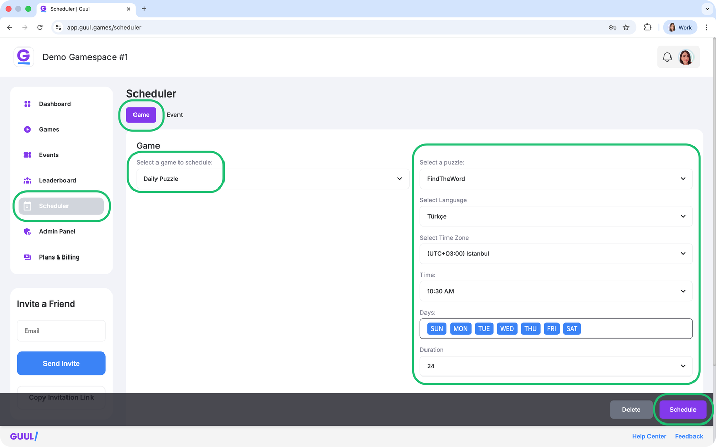 Time and Days: Set the time and days you’d like the puzzle to refresh. A new puzzle will be generated at your chosen time.