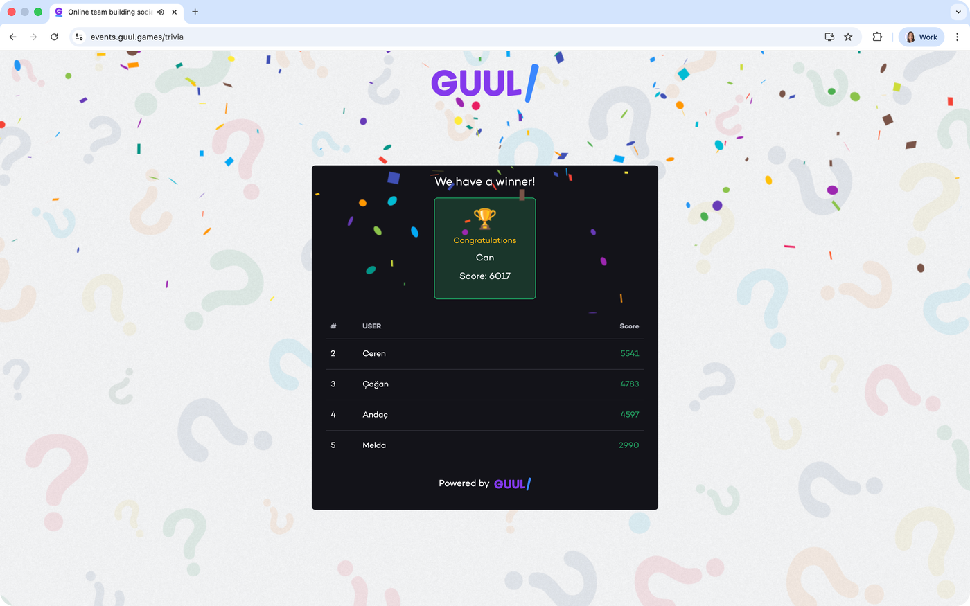 If multiple players remain until the last question, those who answered every question correctly share the win.