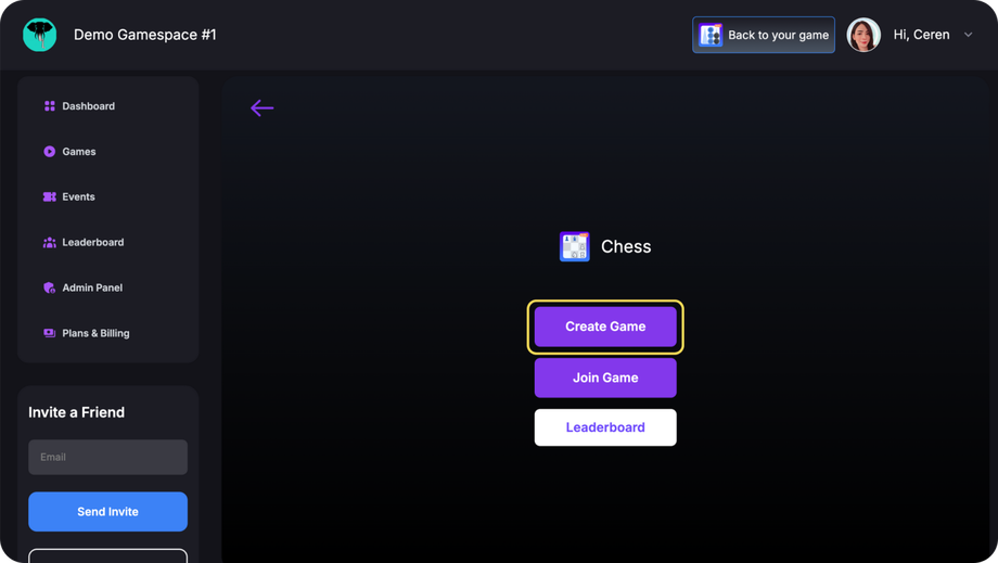Room ID: Copy the Room ID and share it with friends. They can enter this Room ID on the Join A Game page to join your game.