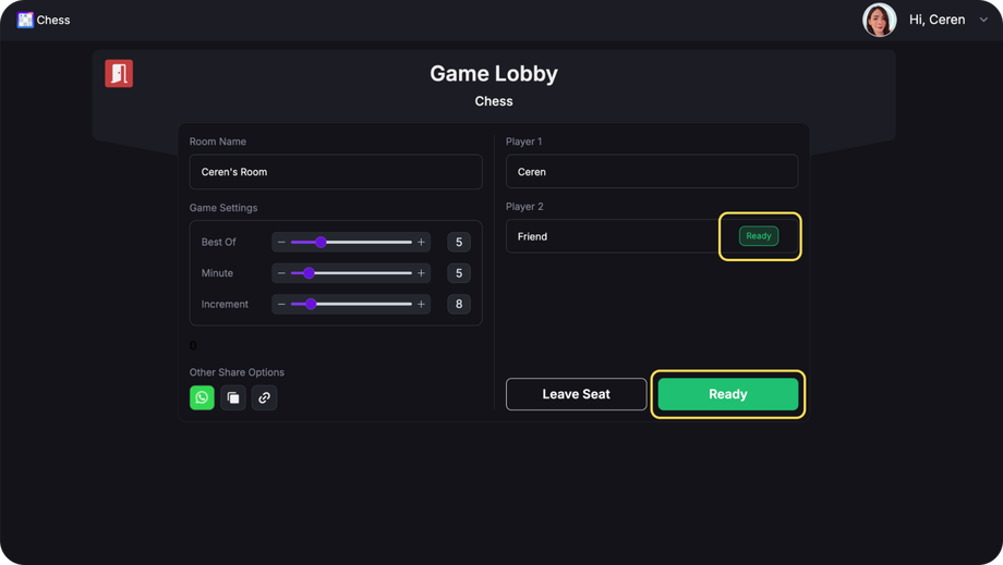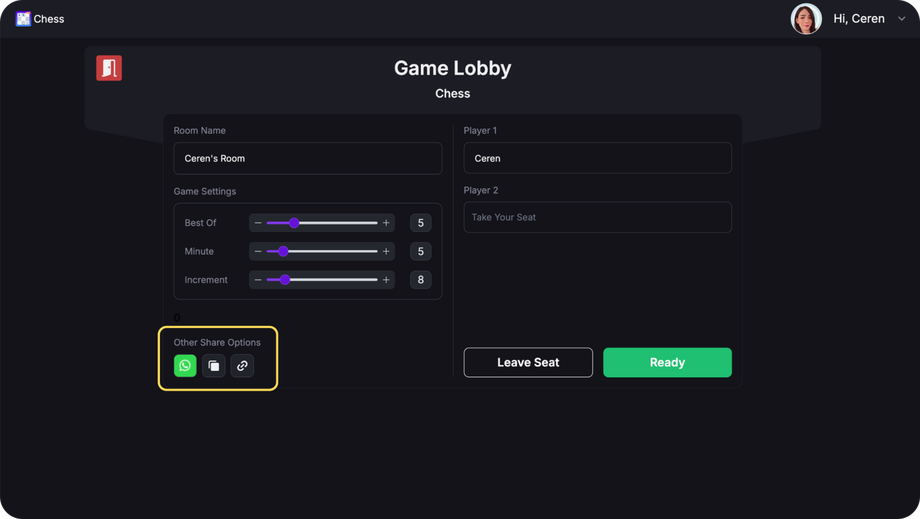 Room Link: Copy the Room Link and share it however you prefer. Your opponent(s) can easily join by clicking the link.