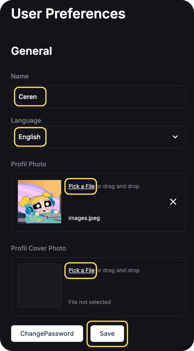 You can change your name, language, profile photo, or profile cover photo at any time.