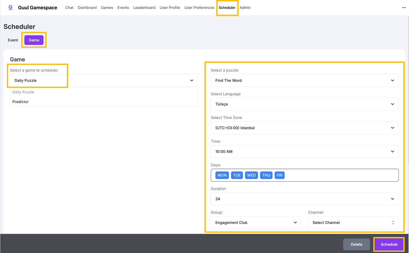 From Select a game to schedule, choose Daily Puzzle.