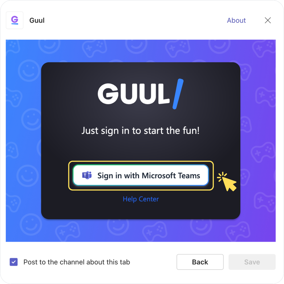 After installing Guul in your Microsoft Teams workspace, it's a good idea to add the Guul app to a channel. This allows you and your colleagues to easily access Guul for social gaming in a specific channel dedicated to fun and engagement.