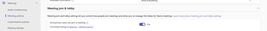 For more information, refer to Manage anonymous participant access to Teams meetings.