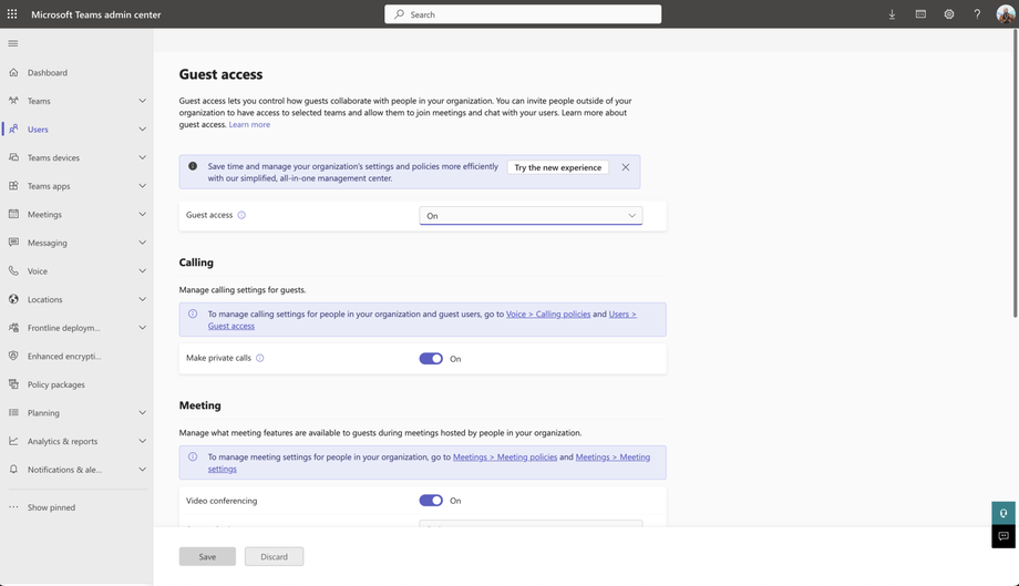 - In the Teams Admin Center, go to Users > Guest access.