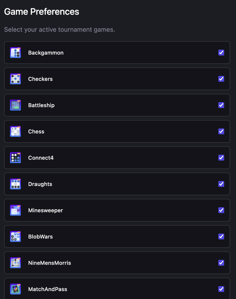 Under the Game Preferences section, admins can curate a list of approved games. This ensures that only selected games are available to users in the workspace.