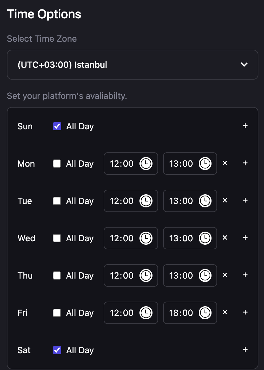 In the Time Options section, set specific time intervals when Guul will be active and accessible to users. This is useful for aligning gameplay with working hours or engagement initiatives.
