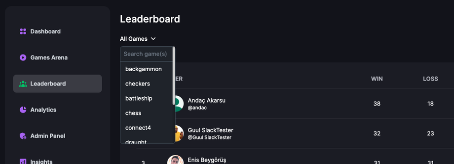 - You can also check out game specific leaderboards to see which team members are the best among the group!