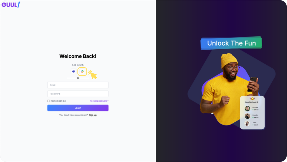 You can access the Guul dashboard both via Slack and the Guul website, allowing you to manage and enjoy all features available in your Gamespace.